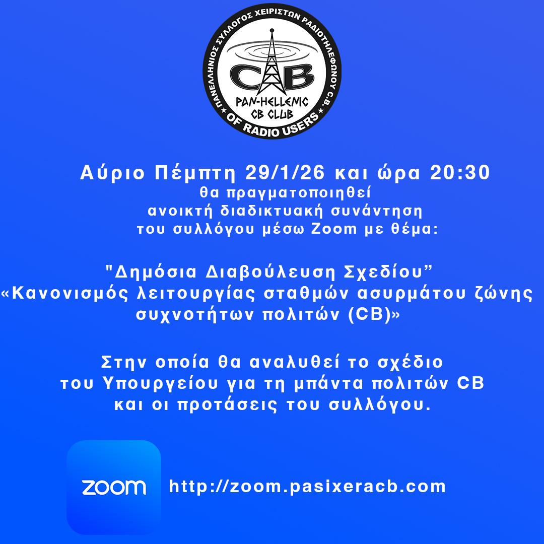 Στην οποία θα αναλυθεί το σχέδιο του Υπουργείου για τη μπάντα πολιτών CB και οι προτάσεις του συλλόγου.